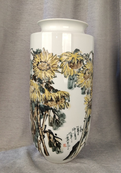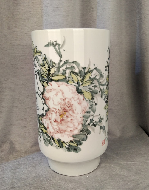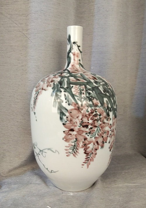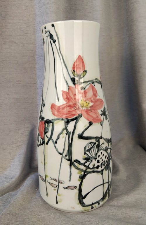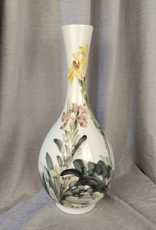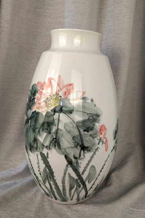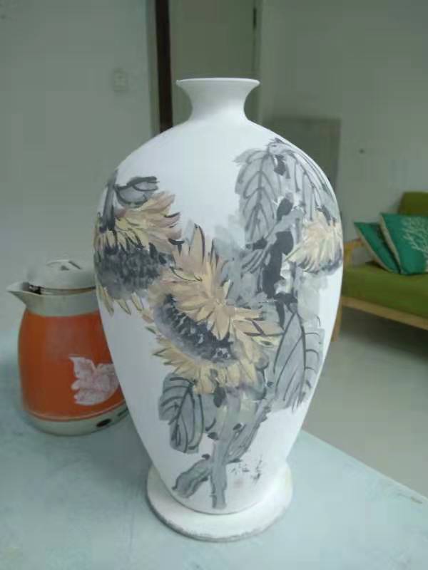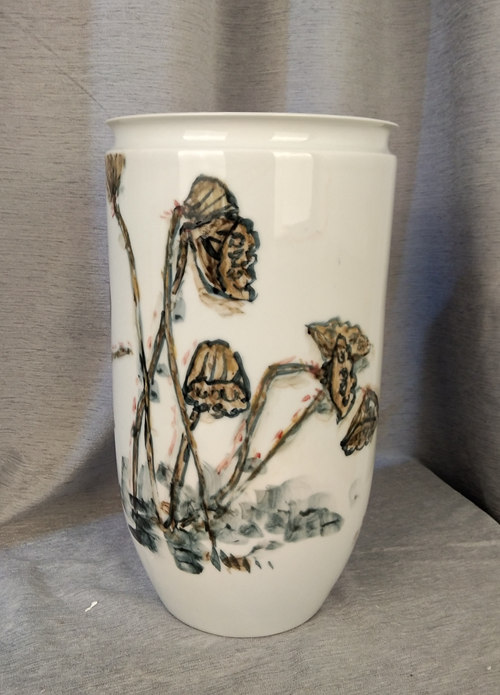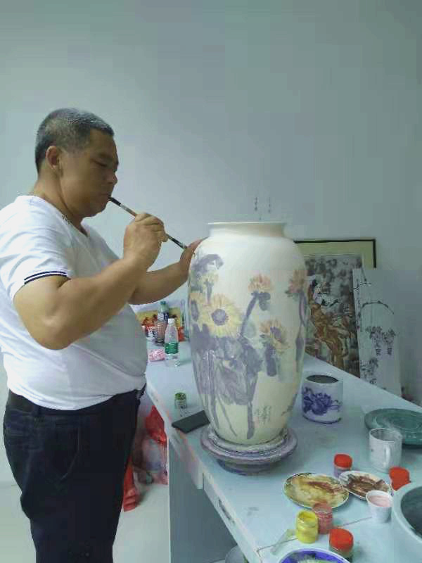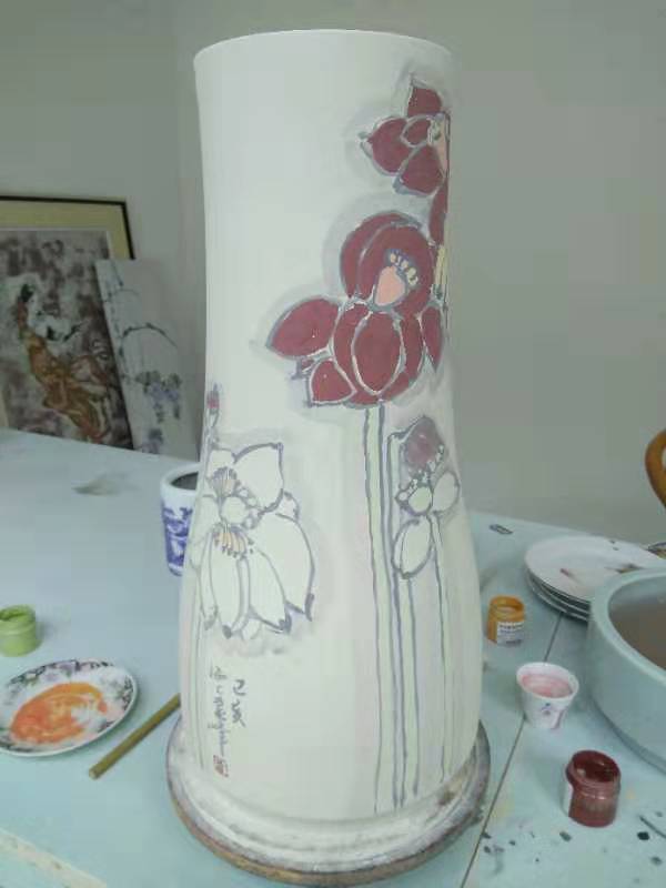 记者石波:夏老师,这次看到您创作了那么多瓷器花瓶的作品,而且在瓷都景德镇画的,感觉不一样吧!