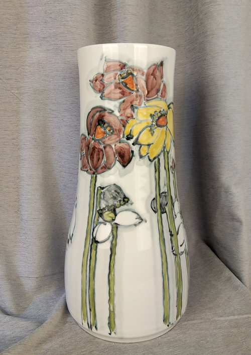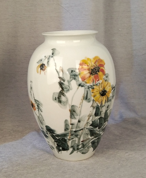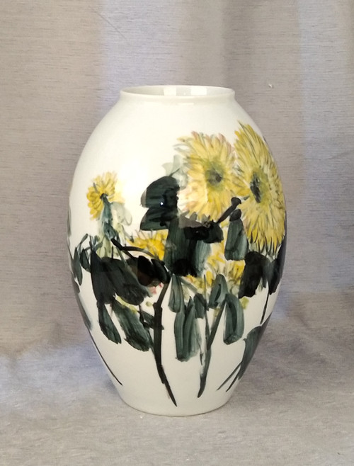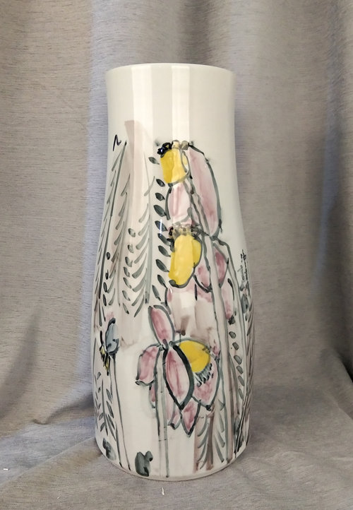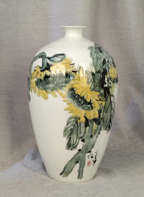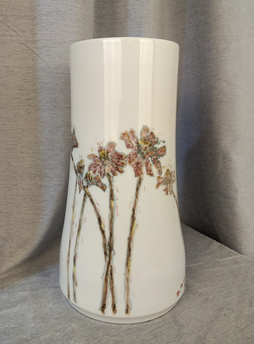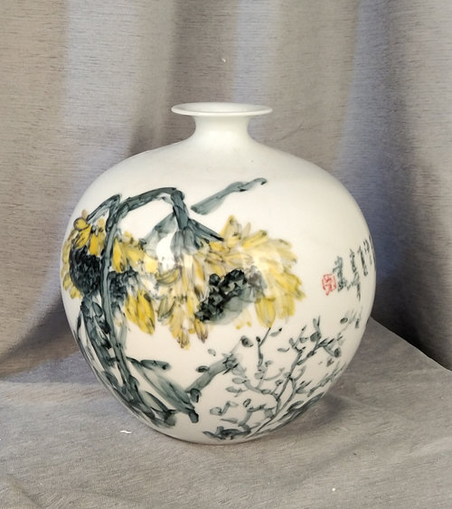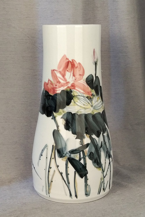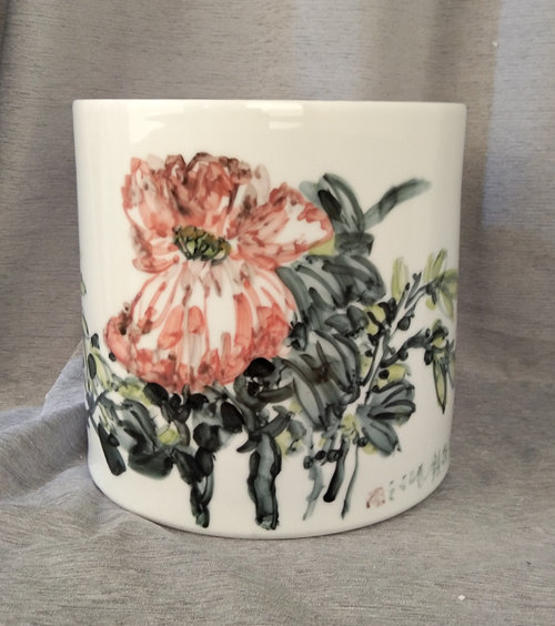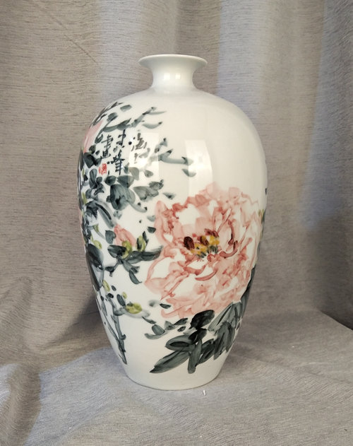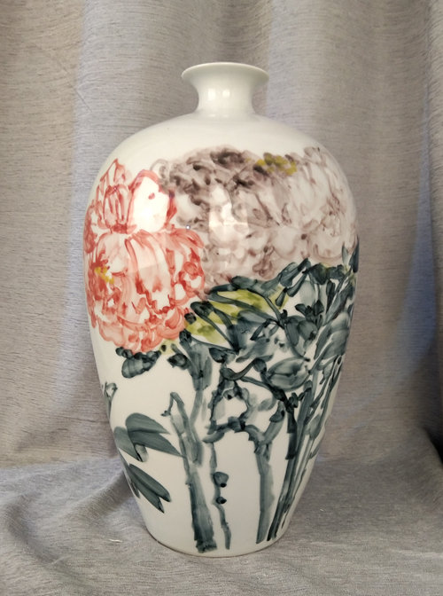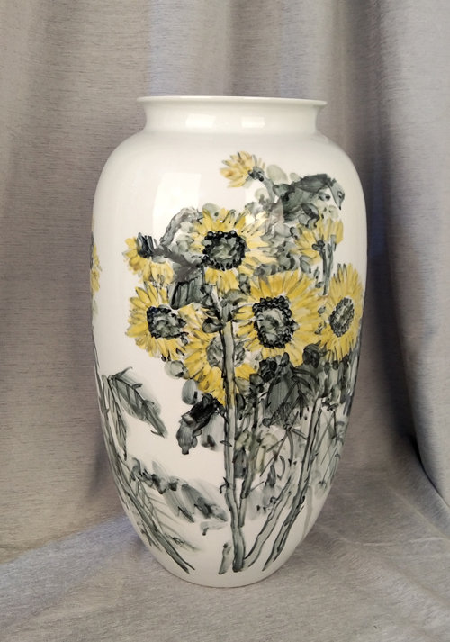 记者石波:夏老师,这次看到您创作了那么多瓷器花瓶的作品,而且在瓷都景德镇画的,感觉不一样吧!