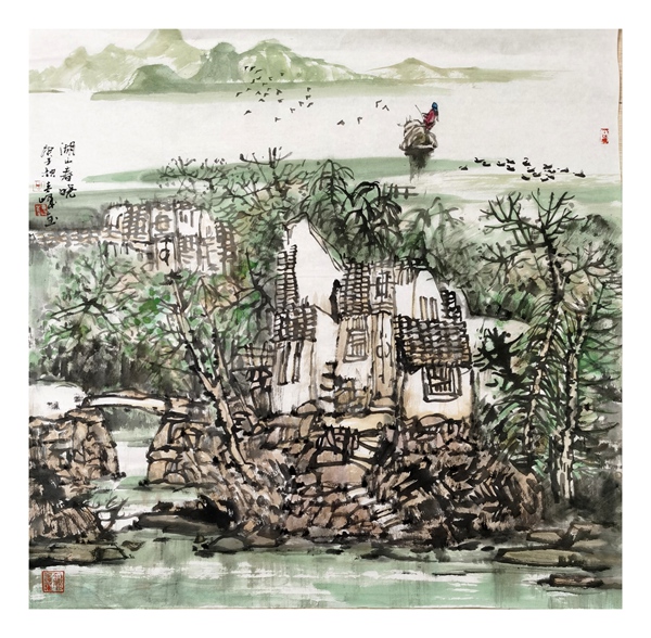 读山水画家周青峰的作品,就像读一首静美幽深的诗篇,能容风云日月,能担雨露花树,能寻古朴家园,能游精神世界。体验着他那谦卑超逸的人生境界,是一种惬意的享受,从中可以深刻感受到他的水墨智慧。
