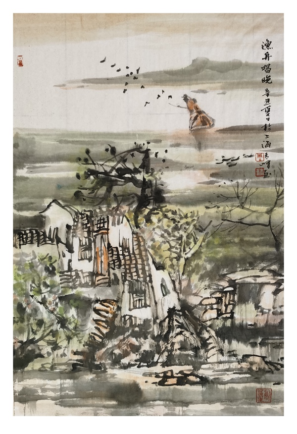 “艺术是人类活动登峰造极的成果,它使人类一切苦难、无限的辛劳和挫败得以最终证明是值得的。”周青峰尤喜老庄哲学、易经之境、天籁之纯、宇宙之音。他敬畏传统,感恩自然,珍爱生命,坦诚相言,不负人生,一步步走向成熟和成功,那是一种艺术之旅的自修与悟道的反省,是在摸索中的前行和不断更新。他的绘画风格多用湿笔积墨,密点短皴手法求得深厚,作品极其讲究意境和整体感,在沉郁苍茫的风范中蕴涵着幽邃深远,耐人寻味的情怀,他的画作取材广博随意,不喧哗不盲从,淳朴典雅,既得深厚传统的滋养又不失现代艺术的生动,笔墨间蕴含着古朴的神韵,故他的画作有着浓浓的古老生活气息……周青峰创作的《牧归图》,格调高雅,极富情趣。画的远处以微微淡墨,寥寥蕴染一带远山,勾勒出黄昏古老的景色,山路上四五只活泼轻捷的羊儿,远远的把牧羊人甩在后面。几株杏树,几朵晚霞,水岸在即,归燕翩飞。尺幅之间,点画之外,诗情画意尽情地流淌出来,水不是水,墨不是墨,这是一幅水墨的筋络,是画家心底深邃文化积淀的呈现。