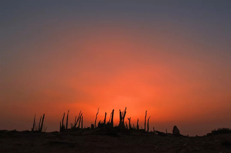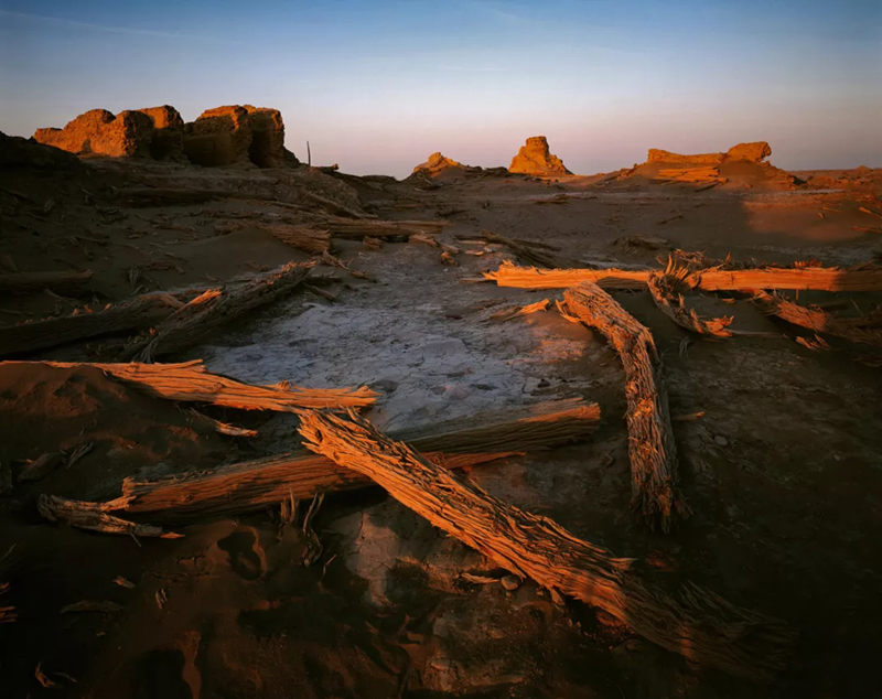 风蚀残阳、大漠孤烟、古墓残影、戈壁雅丹、“东方庞贝”、死亡之海......城郭岿然,人烟断绝,风声如鬼泣。伫立“死亡之海”罗布泊冥冥大漠千年,月色寒影下的“东方庞贝”楼兰故城,恍若大漠中游弋的孤魂,消融在浩荡洪荒的戈壁雅丹。还有那传说中死而千年不倒,倒而千年不朽的胡杨枯木,依然皴皱遒劲、横逸竖斜地盘亘在故城废墟之上。