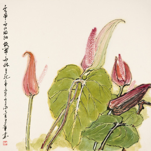 ……多少年来,我云游四海,眷恋那些岩涯上,草丛里,溪流边和山涧里的各种花卉,寻找它们的踪迹,每当我提起画笔准备写生时,不敢轻易惊动和打扰它们……,默默地注视、静静地观察,那种对大自然敬畏的之心油然而生。我慢慢的品味,细细的感受,然后感动,把这一刻对大自然的感应用笔触、墨色、颜料和水反应到宣纸上,让它自然融合、融汇、融化。写生不光是记录对象,更不是对大自然的再现,而是用它来表现自我,用自己的特殊语言来表现它,让我的作品一起感动我观众……