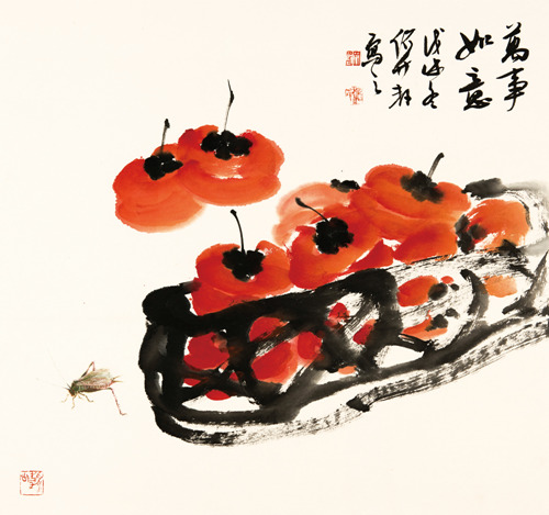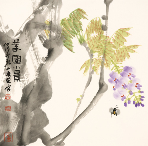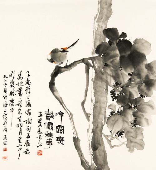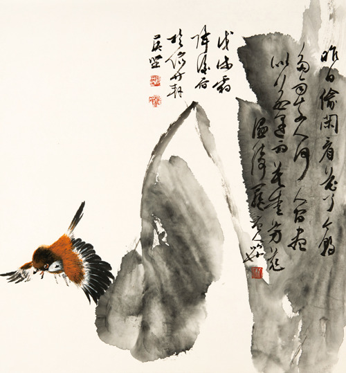 书法早年喜作篆隶,偶取簡牍笔意;国画初学人物后转学花鸟,取海上任伯年。上世纪末以写意笔法入工笔,喜以纯色作作重彩。近年师事方增先先生学笔墨写意。