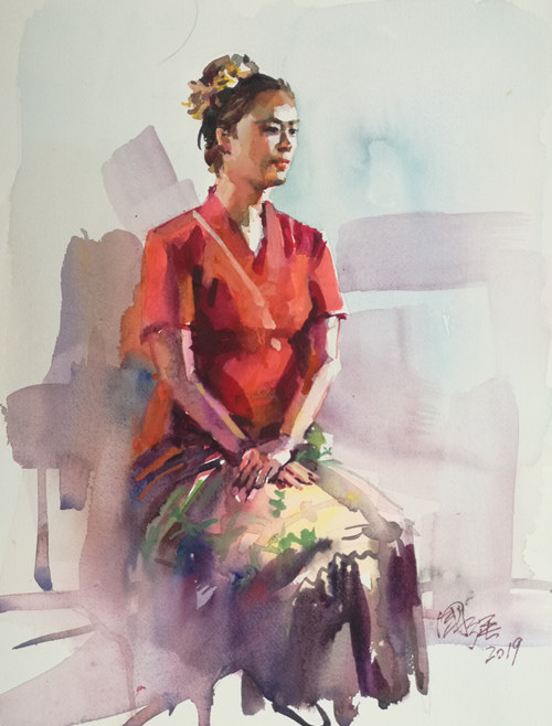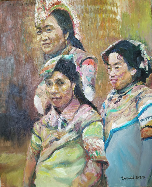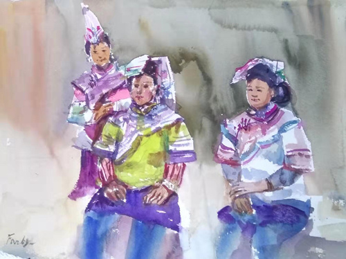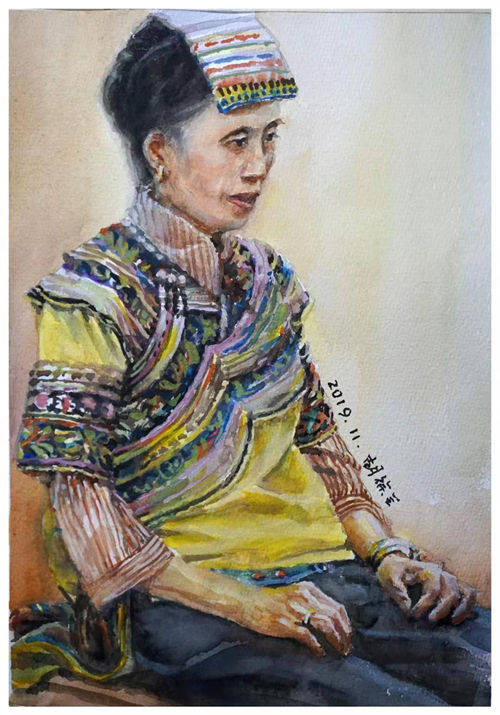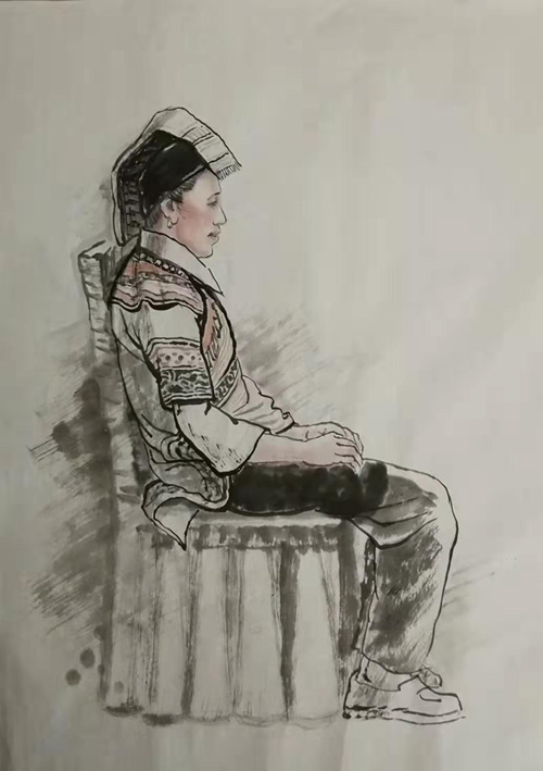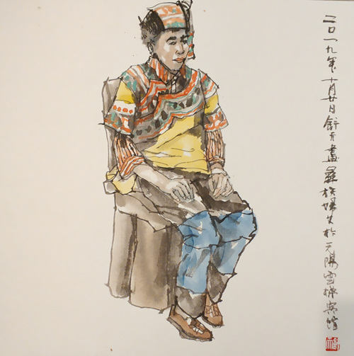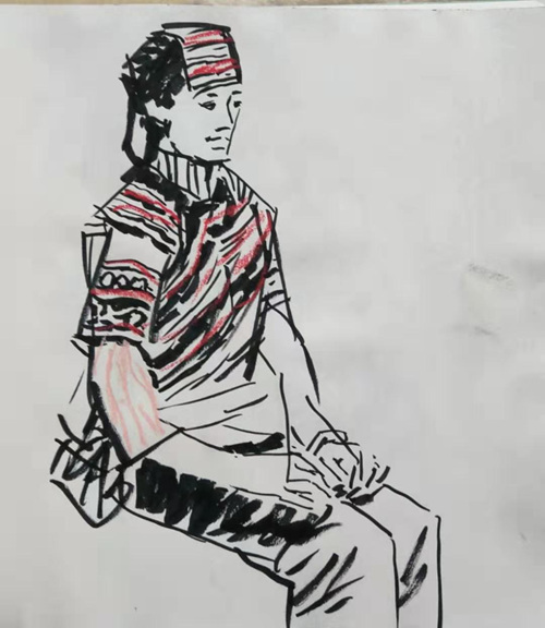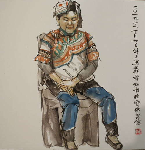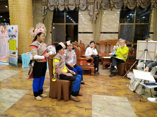 画家们不顾一天写生的疲劳,晚饭以后就写生人物了,这些哈呢族模特,都是酒店餐饮部周经理帮我请来的。