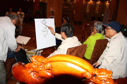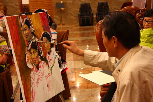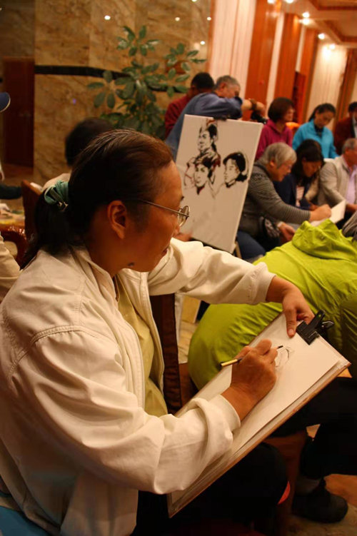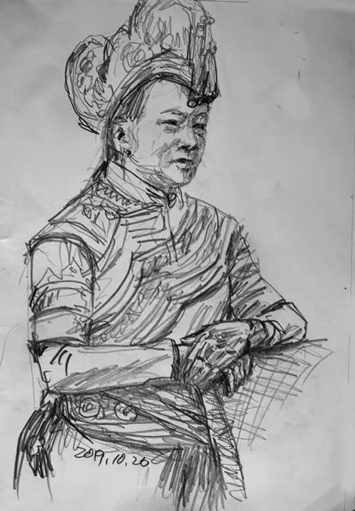 少数民族人物写生,吸引了许多画家,由于一天的写生,大家累了,我以为晚上人物写生的画家不会多,想不到,过来一会儿,基本上都到大堂来写生了,许多画家的作品还是很精彩的。
