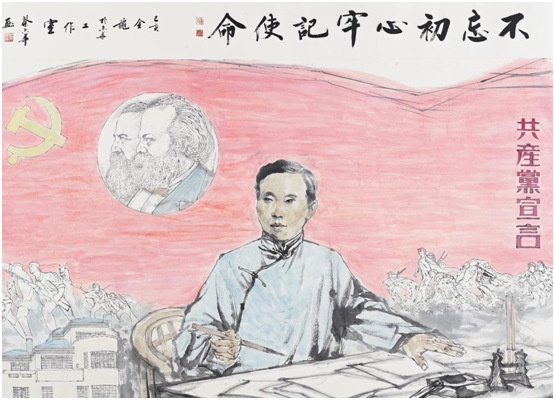 谈到这幅画的创作初衷,蔡志华是这样解释的:我们生活在一个和平的年代,战火硝烟早已远离我们,但当今的和平来之不易,是无数如陈望道先生一般始终坚守真理,坚定马克思主义信仰的革命先辈用鲜血和汗水换来的,因此,作为一名党员,无论身处何地,不仅要珍惜现在的稳定富足与幸福甜蜜,更不能忘记真理的味道,不能忘记走过的过去,不能忘记为什么出发,这样才能牢记使命砥砺前行,心怀梦想永远奋斗!