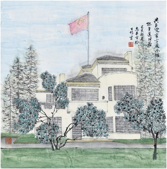 画作《共产党宣言展示馆——陈望道旧居》