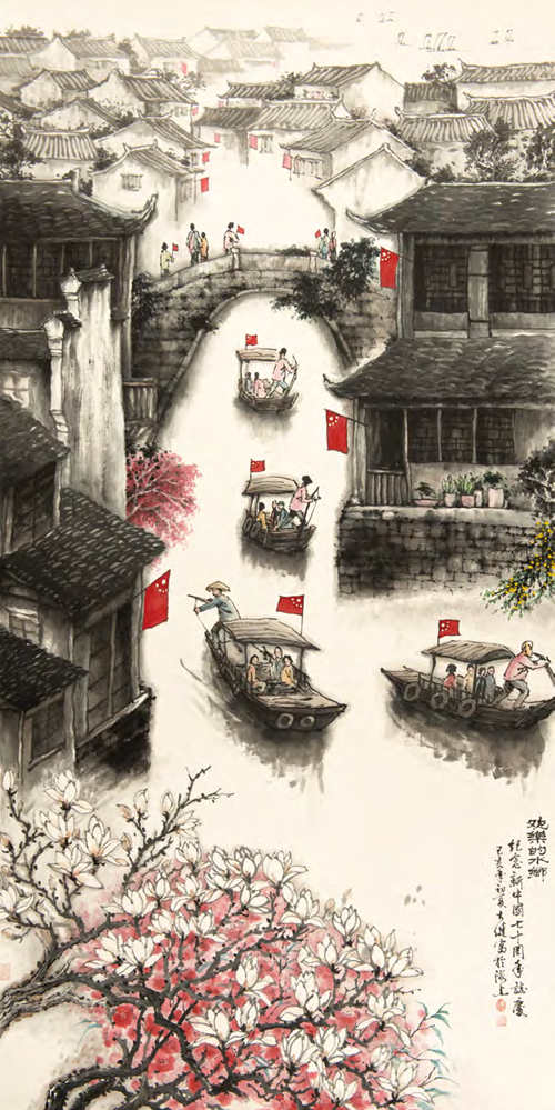 在喜迎中华人民共和国成立70周年的日子里,我们迎来了《繁花似锦——上海美协花鸟画艺术沙龙与浙江桐乡市人文画院作品联展》活动。展览由浙江省桐乡市文联、嘉兴画院、上海市美协中国画艺委会、虹口区文联联合主办,汇聚了画家的70件作品。这些作品反映了沪浙两地艺术家对祖国经济飞速发展、人民生活蒸蒸日上和江南大地优美景致的真切抒情,让观众得到一次美的艺术的享受,也让两地艺术家的艺术风格和技艺得到了一次切磋和交流。