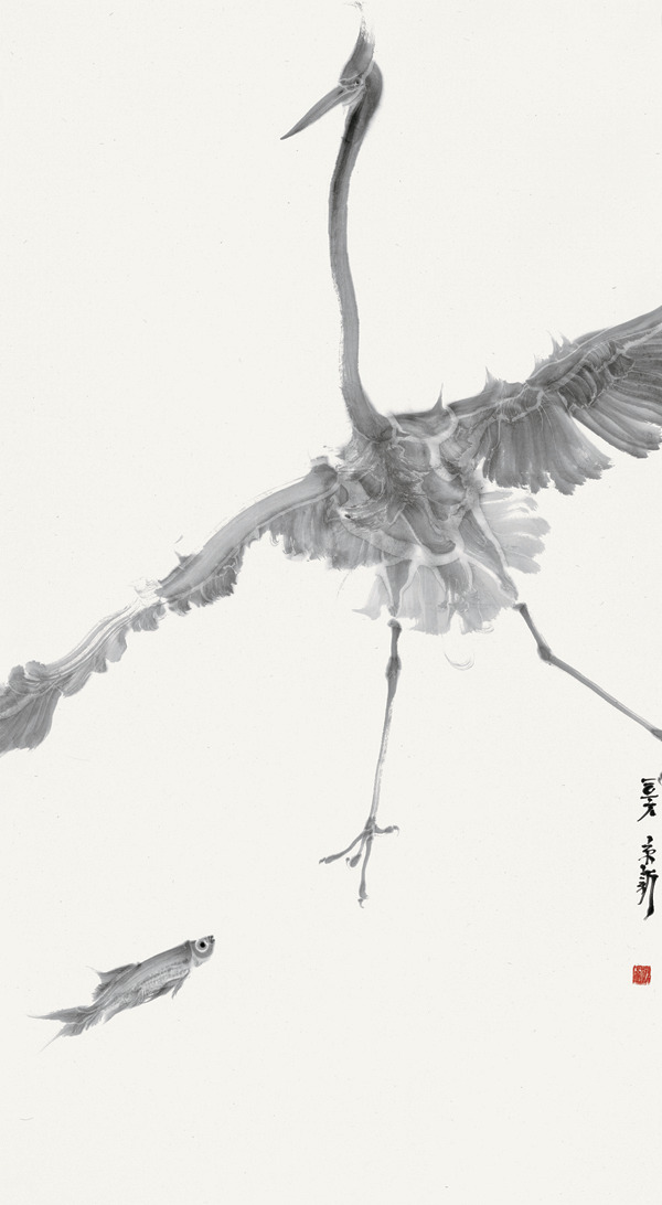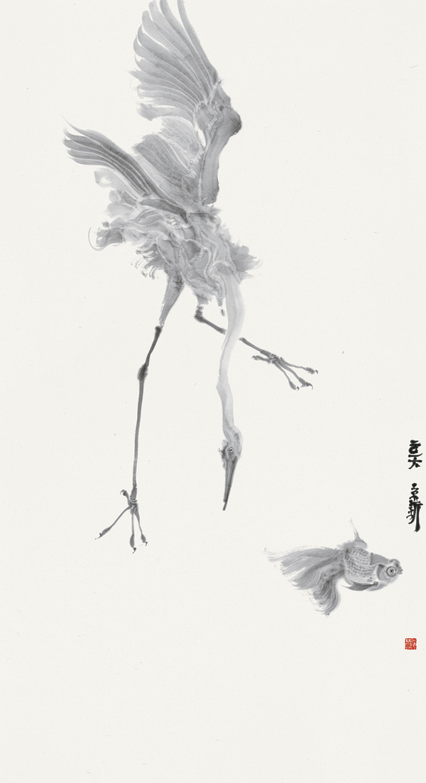 《鱼-鹭系列(11)》 152×83cm