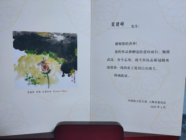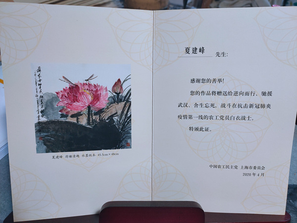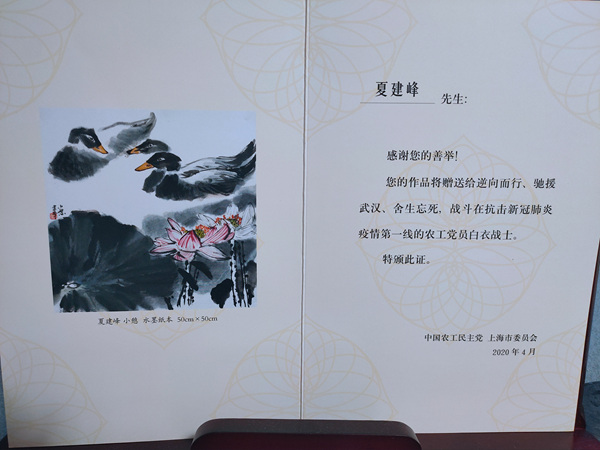二月底,在农工党上海市委会秘书长王晓东同志的倡议下,夏建峰和农工党上海书画院院长陆春涛、书画院秘书长倪煊标一起商量。决定由我们农工党上海书画院的画家为我们农工党的医务工作者创作一些书画作品,让我们援鄂的英雄们在凯旋归来的时候,作为礼品,赠送给当代最可爱的人。