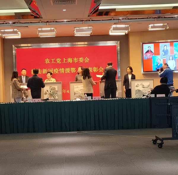 四月二十八日下午两点钟,农工党上海市委在陕西北路民主党大厦六楼会议室举办“抗击新冠疫情援鄂医务工作者表彰大会”以及书画捐赠仪式。