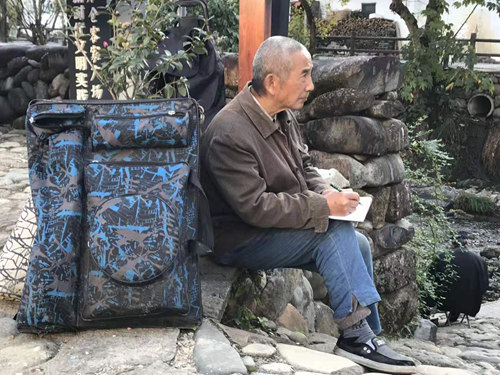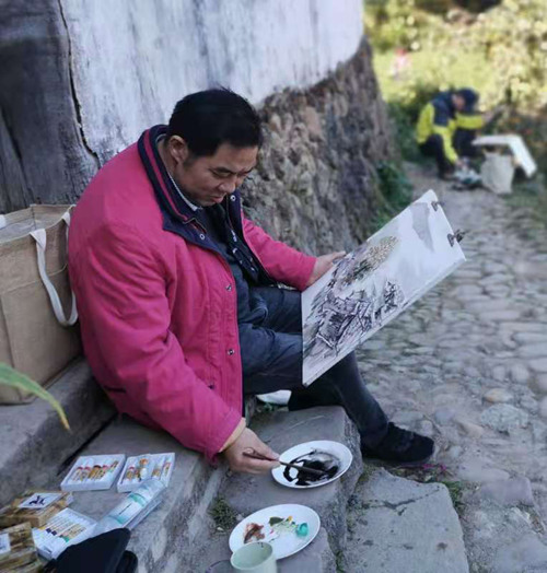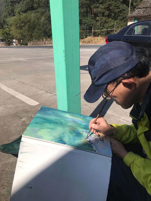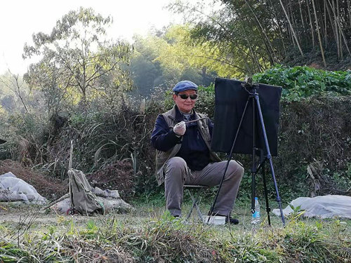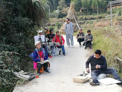 上海画家们在平岭村口写生