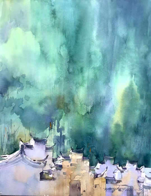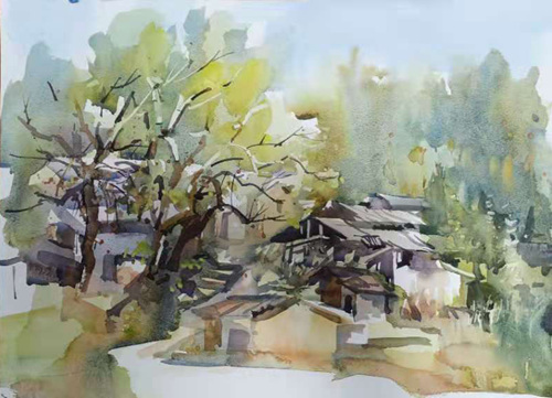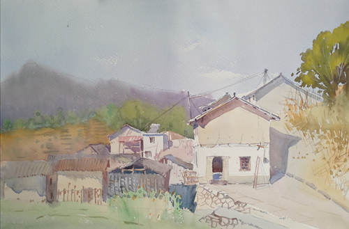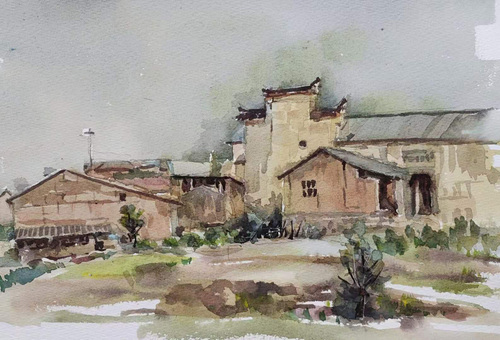 朱顺林写生作品《丽水松阳古村落》
