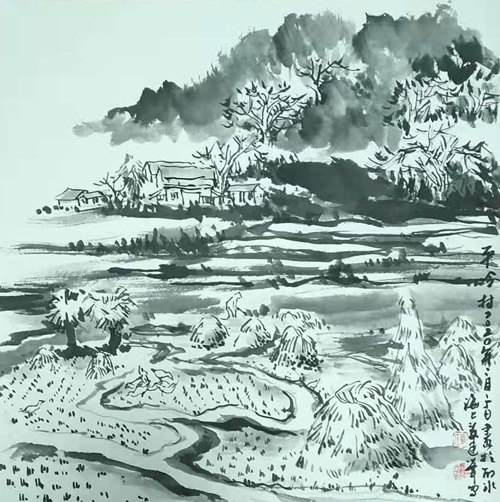 胡徐全写生作品《金山下村古村落》