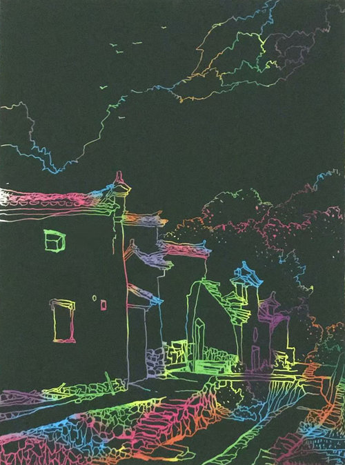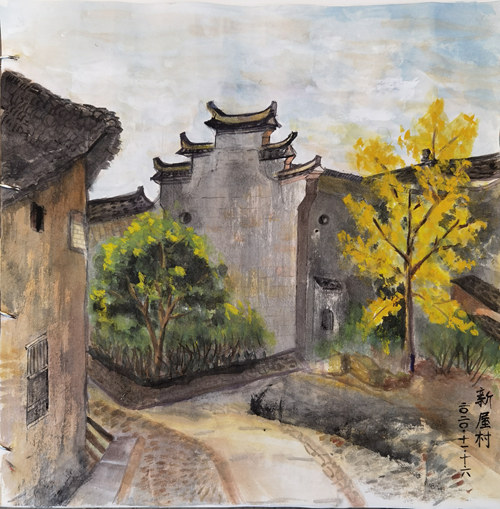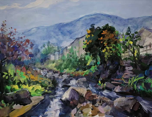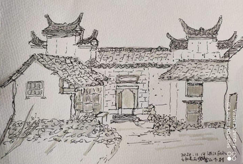 华静写生作品《畲族新陶村古村落》