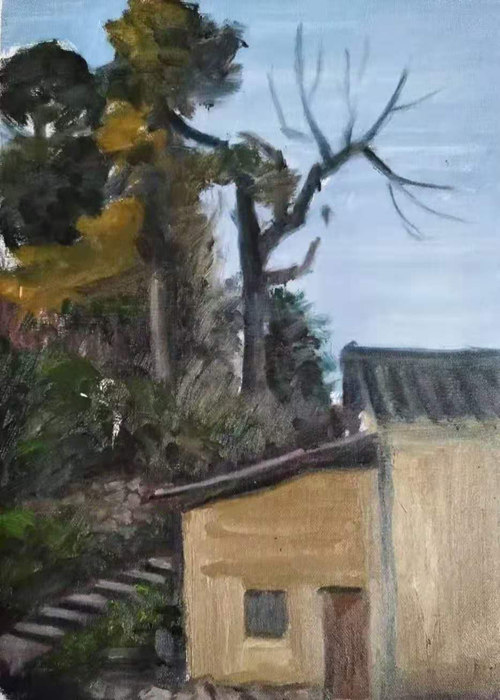 史新民写生作品《平山村16号门前所见》50×50cm