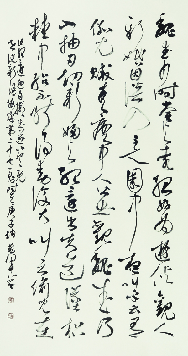 草书的伟大在于用单纯简洁的线条点画来表现作者的心性情绪,让人产生心理共鸣和美的享受。上海市书法家协会第七届草书专业委员会共17人,他们长期在学习研究草书上孜孜不倦、积极探索,今天集体登台亮相,每人展出5幅作品,目的在于听取方家和观众批评,弘道养正,继续前进。上海市书法家协会主席团成员每人一件特邀作品,无疑为这次展览增强了光彩。
