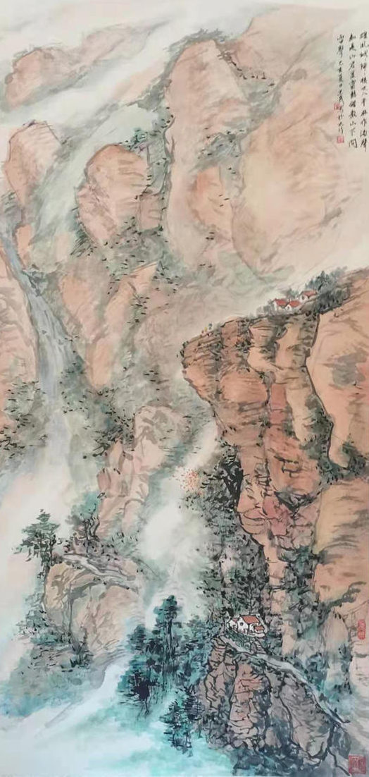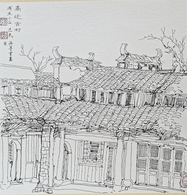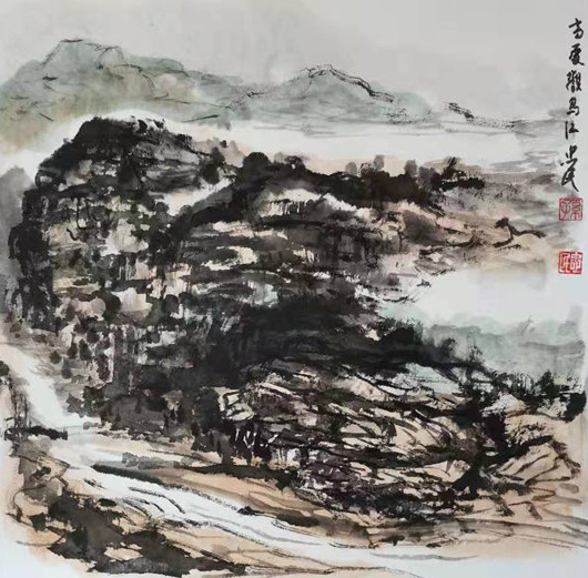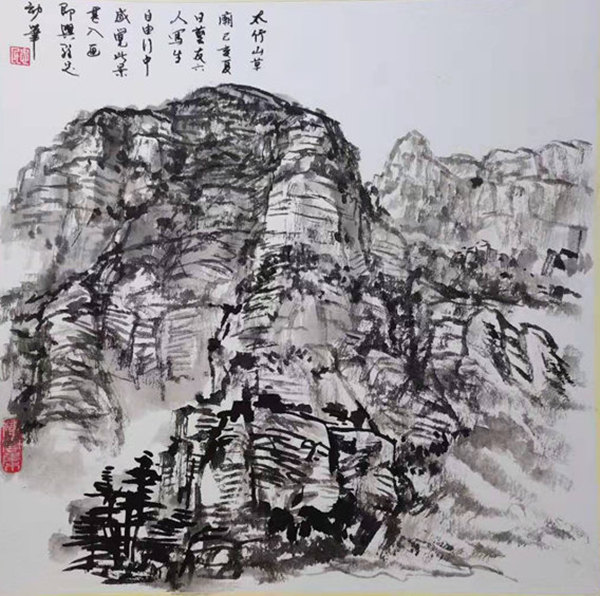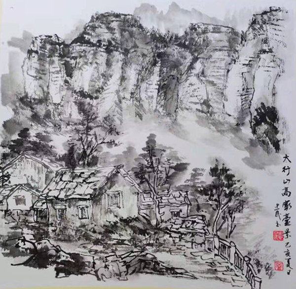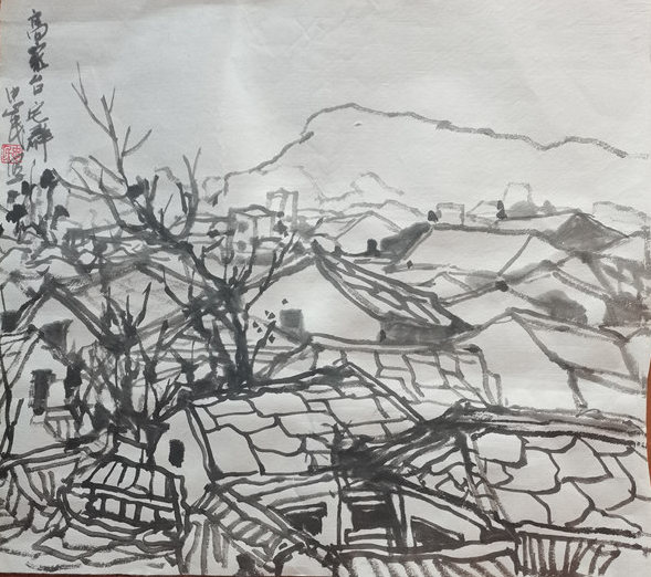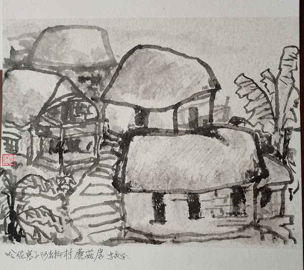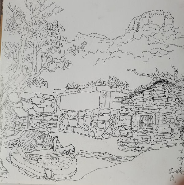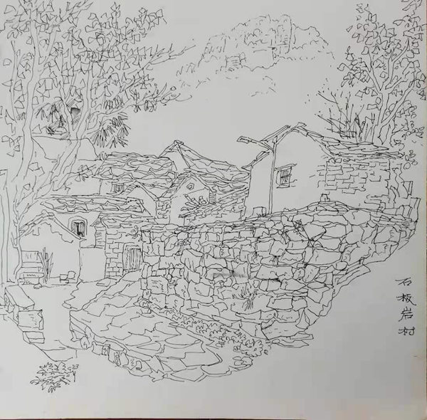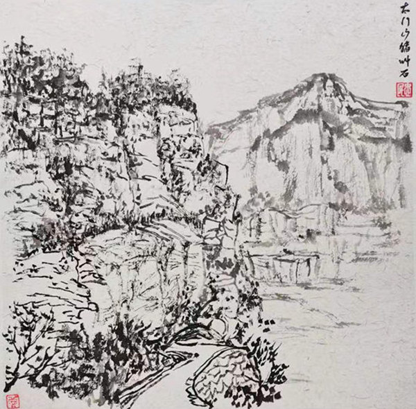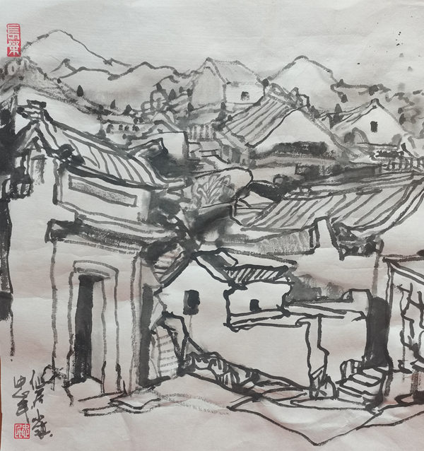 再说行路。如今的飞机、高铁、汽车给人们带来了快速的便捷,空间距离不再是问题。于是,只要有时间,孙忠民常会约上三五知己,背上画夹,结伴而行。他更乐于随由市美协沙龙、海墨画院等组织的写生采风团,先后在云南昆明、贵州乌江、河北太行山、浙江仙居等地寻寻觅觅。漫长的旅程,触目的美景,化成了一幅幅水墨淋漓的小品,或线条简洁的钢笔速写,这些点点滴滴的记录,是他的所思所想,也是他的追求。