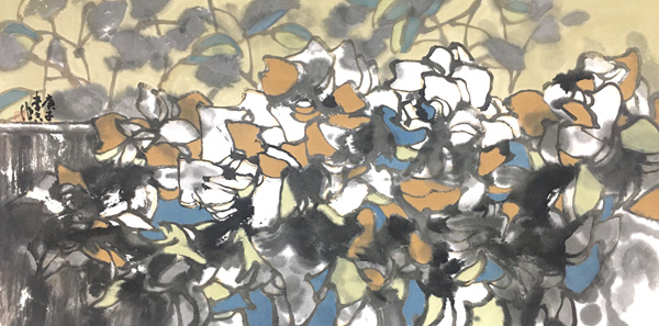作品“四月国花”入选“2017全国中国画展”