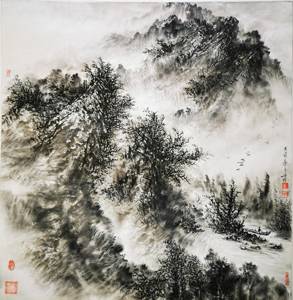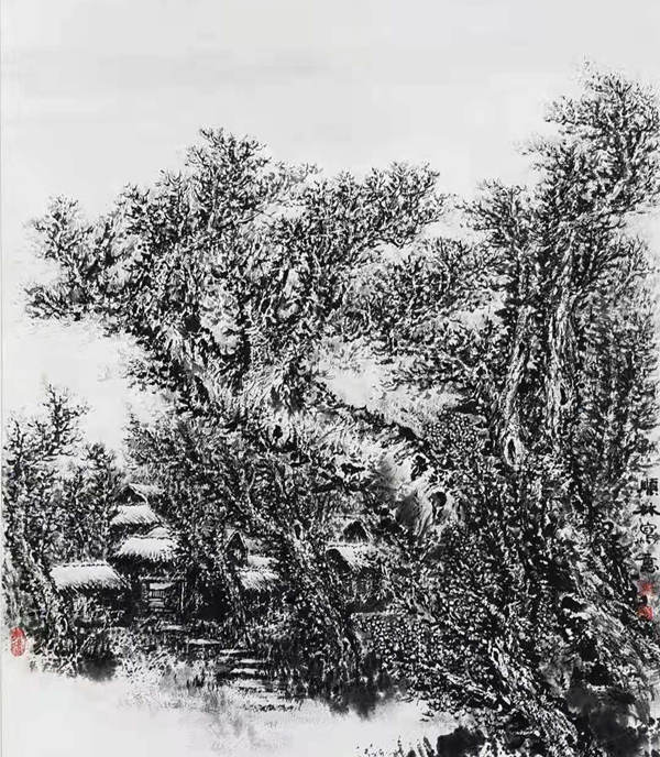 朱顺林的山水是写意的,也是惬意的。他的画反映出他那平实敦厚的个性,以及不愿囿于现实的理想主义追求。他用山水丰富自己的精神生活,而他的精神追求又反哺他的山水创作。由此,我们欣赏他的作品的同时,也和他在精神层面有了跨越时空的交流。这,就是中国山水画的魅力所在!