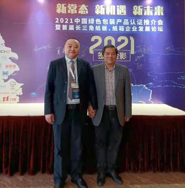 上海包协纸委会秘书长顾华(左),纸委会副主任、巢培包装印刷董事长夏建峰(右)