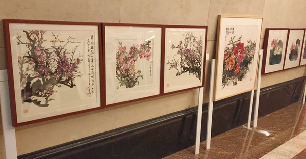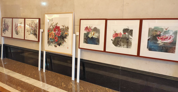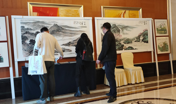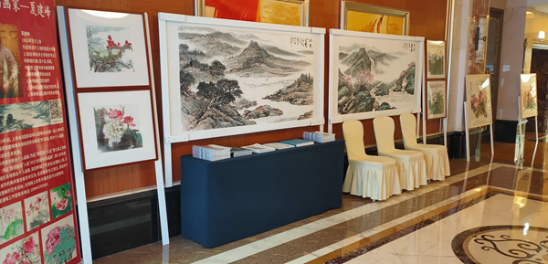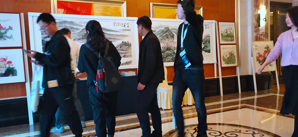 这次夏建峰老师为画展,精心挑选了一批近两年来创作的作品,有大幅的山水画作品,还有许多花鸟画的小品。三天来,企业家们在会前、会后,以及会议的茶歇时间,驻足在每一幅作品前仔细欣赏,为这次大会增添了许多文化氛围。