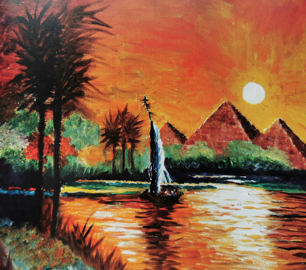 埃及 夕阳之尼罗河落日 51×61cm 2010