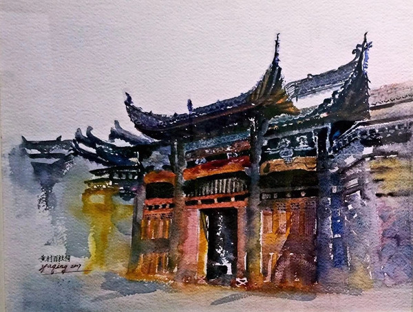 2018年《黄村百柱祠》入选上海水彩作品展