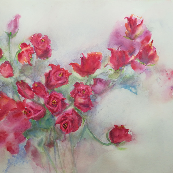 水彩 花卉 50x50cm