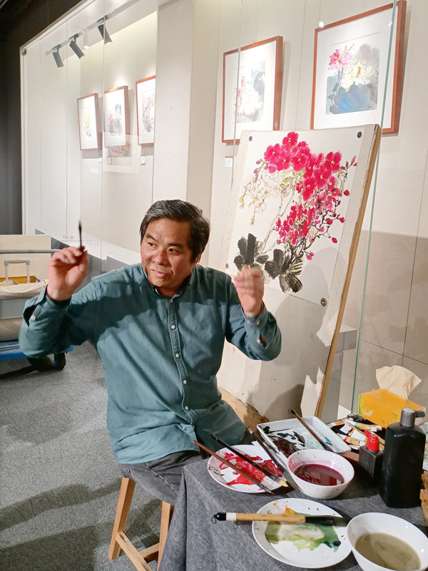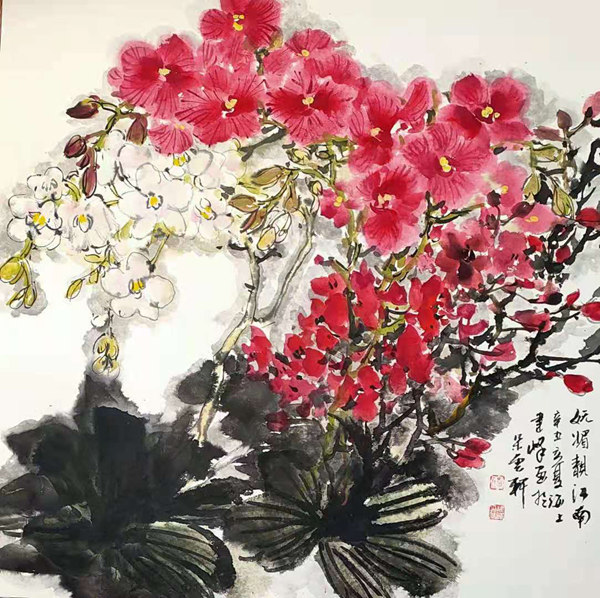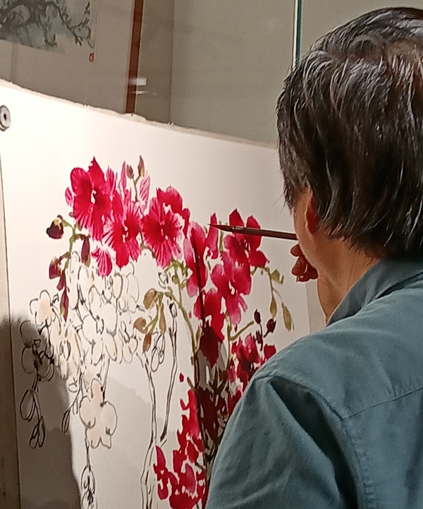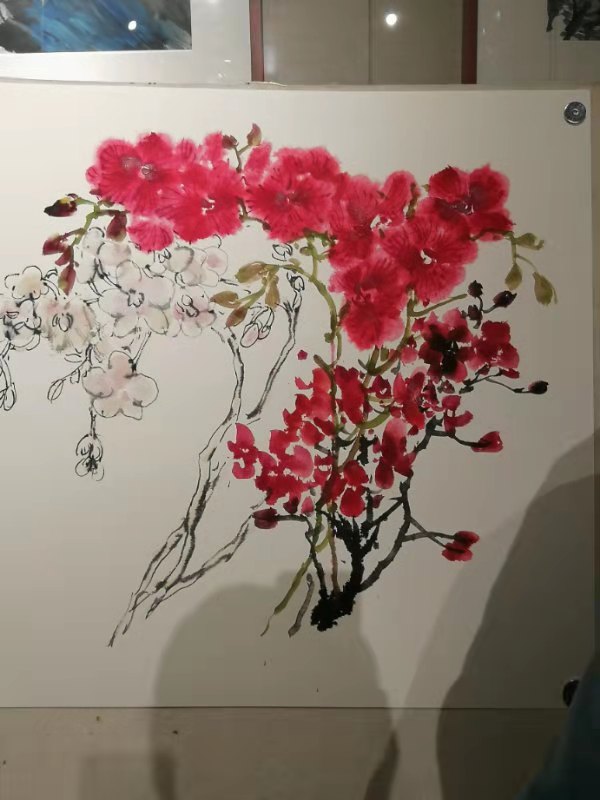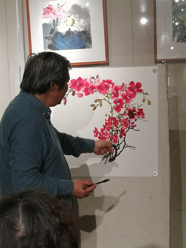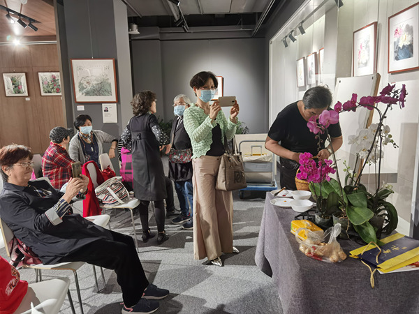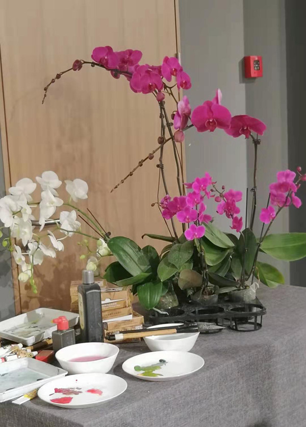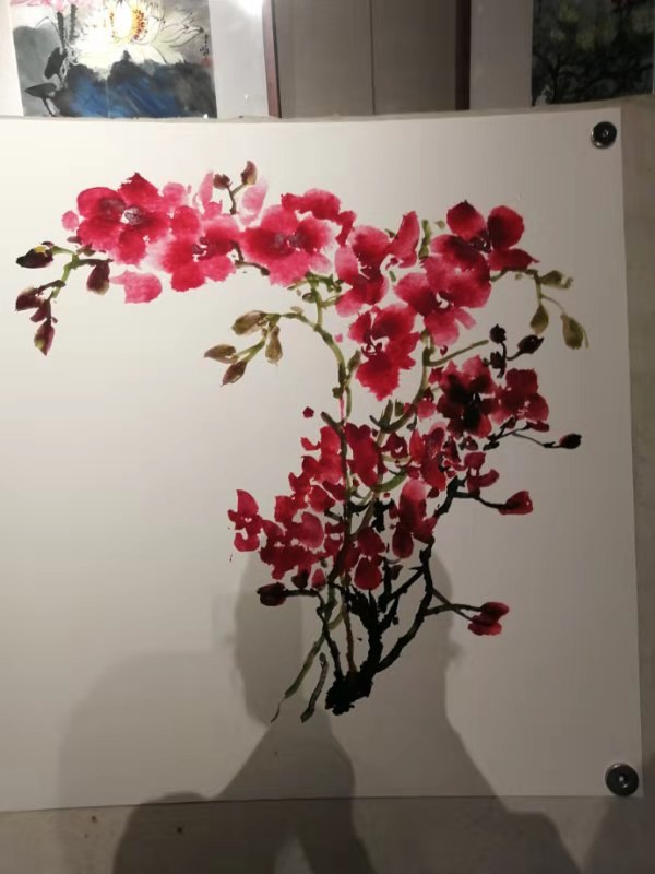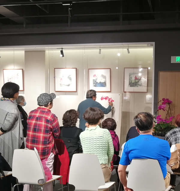 但是夏老师看了蝴蝶兰以后,非常有把握的,从画面的构图、局部和整体的用色处理调整,都做了深入简出的示范 ,讲的比较仔细,受到前来参加活动的同行与艺术爱好者的好评。