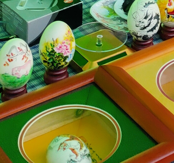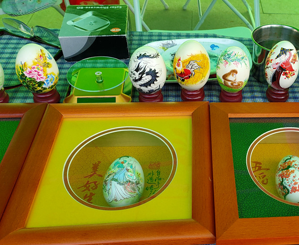 花博会上,来自全市以及全国的游客欢欢喜喜、高高兴兴的拖家带口游览于各个展馆,为了增加展会氛围,6月11 ~12日连续二天,开展全市的非物质文化遗产项目集中展演活动。普陀区非遗之一”手绘彩蛋”项目,也来到花博会现场,“手绘彩蛋”传承人英自海老师,笑脸相迎的接待每一位游客,忙的不亦乐乎。