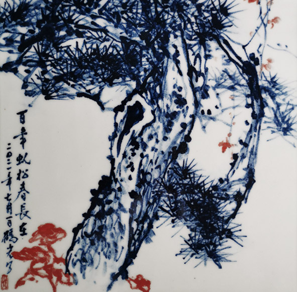 应鹤光 百年虬松春长青(瓷板画) 40×40cm