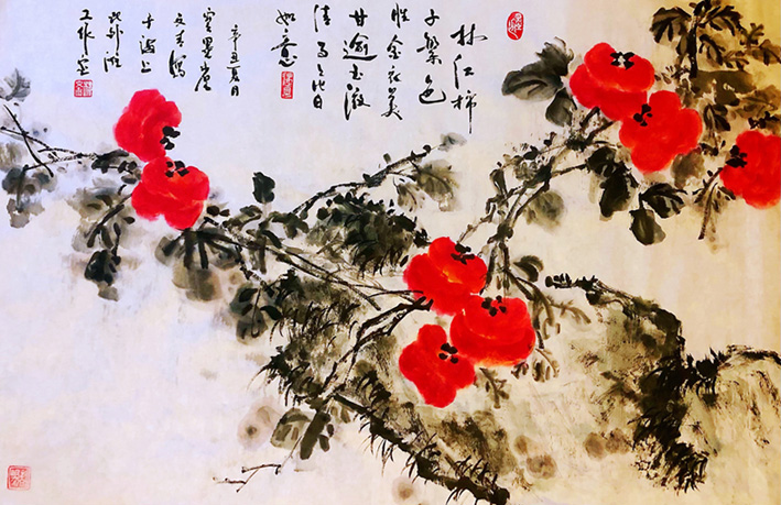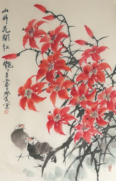 翁国樑 山丹丹花开红艳艳 70×45cm