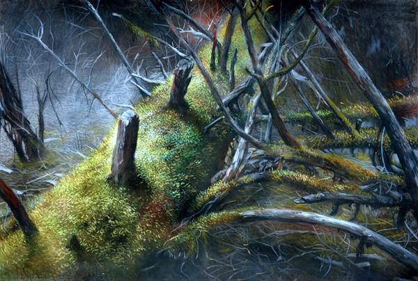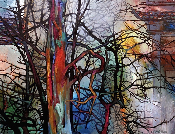 每个画家都在力图以独有的形式语言来诠释自己对自然界、对生活的理解,绘画领域中真正能够找到不同于古人,不同于今人,有别于他人而只属于自己的绘画形式是相当难的,我们不泛看到全国各画展中,作品面貌雷同、似曾相见的状况十分严重,甚至可以说泛滥成灾了,有些画以绘画的形式法则去品评似无可挑剔,可细品其画,有意境、有新内涵者微乎其微。我始终认为自然天成是绘画的高境界,真情释放是一个画家的根本,这种自然释放无需去刻意追求,而是绘画诸元素的天然的有机结合,是东西方文化的互补和融合,是画家“读万卷书,行万里路”的长期积累,从而形成了画家独有的感受和意象,并通过丰富的艺术修养、纯熟的绘画技法和完美的艺术形式呈现出来,就是真情释放了。