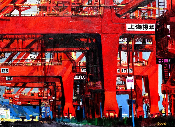 ……面对方国政的艺术,我无法分清民俗与现代,无法辨明主流与非主流,唯一的事实是被作品深深感动。因为在当今这个制造时尚和主义的时代,艺术本质被所谓虚拟现象、精良制作所掩盖,艺术界标新立异,急功近利之风盛行。作为艺术家,他走了一条非常个人化的道路,他搞摄影并很有建树,他也一心一意画他自己喜欢的画,他在国内不求闻达,似乎游离于美术圈子之外,却又是比利时的签约画家。方国政是独立特行的,他追求的是艺术家心中的自由精神,捕捉把握这种精神需要胆识。方国政的风格来自现实,勾画的作品却隐现着构成主义的精髓,内心深处却似乎透着超现实主义的灵性。运用变形、分割、重组等艺术手法,自由发挥,随心所欲,我想这一切或许就是方国政艺术的奧秘所在。