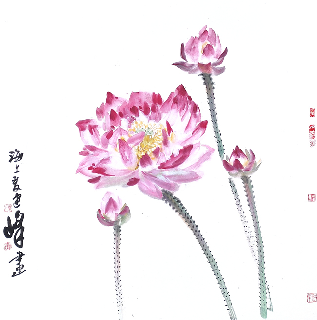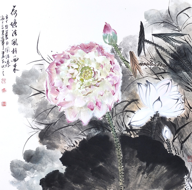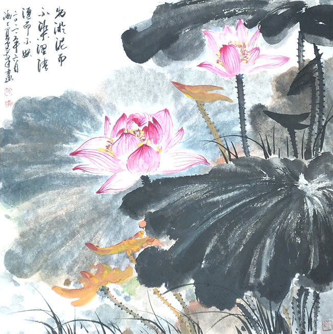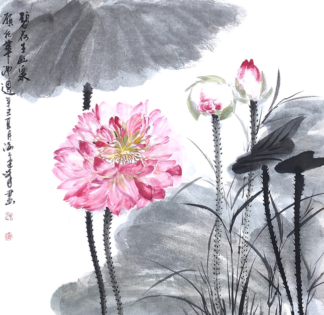 周敦颐之名篇<爱莲说>称颂了荷花“中通外直,不蔓不枝”“出淤泥而不染,濯清涟而不妖”的高尚品格。荷花为古往今来诗人墨客歌咏绘画的题材之一,花鸟画家尤对其情有独钟,历代画家画荷花留下了许多墨宝,这些名家笔下的荷花,或水墨淋漓,或枯笔飞白,古拙淡雅,别有风致。盛夏即将来临,“接天莲叶无穷碧,映日荷花别样红”的荷池美景已经上演。