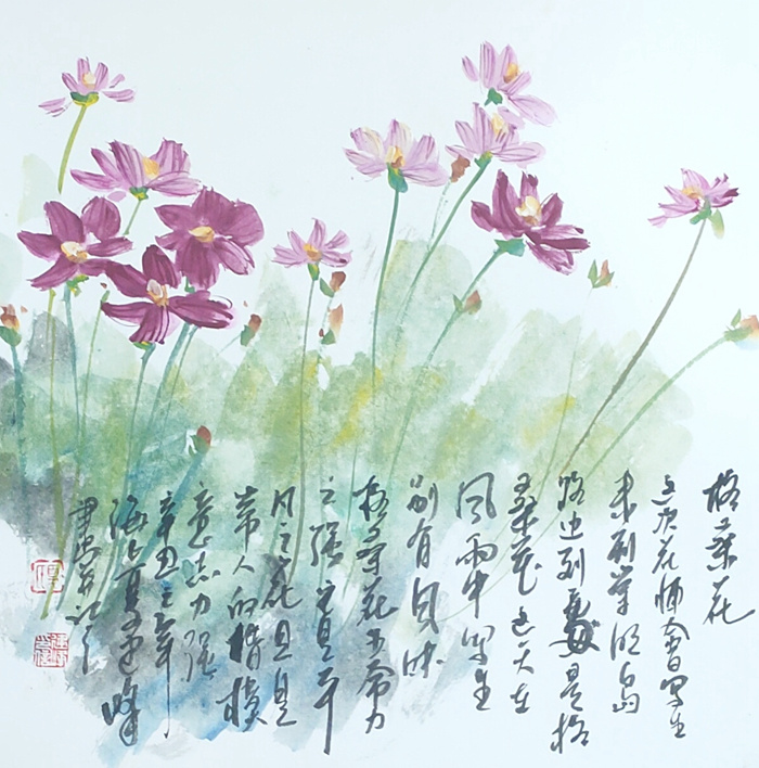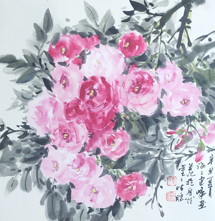 作品“菜花韵”入选第七界上海美术大展,作品“四月国花”入选2017全国中国画大展
