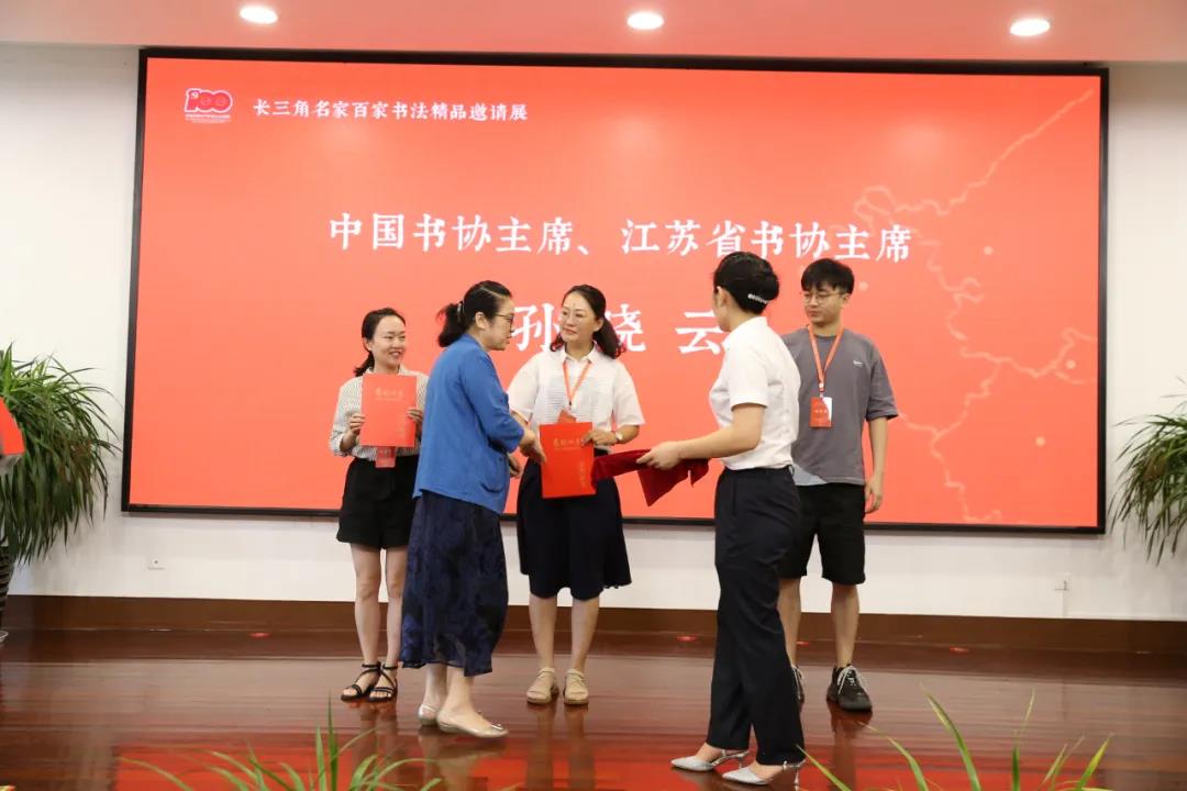 ▲中国书协主席、江苏省书协主席孙晓云为论文获奖作者颁奖