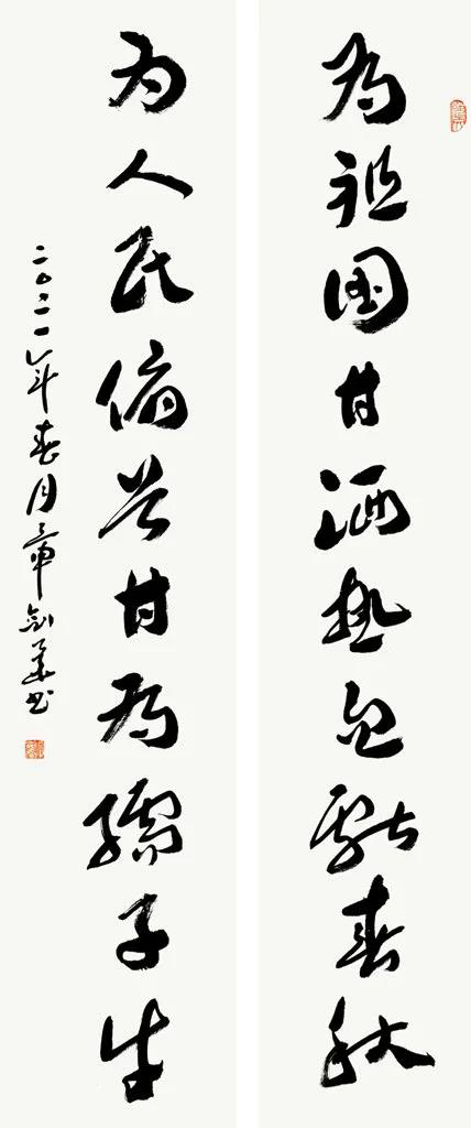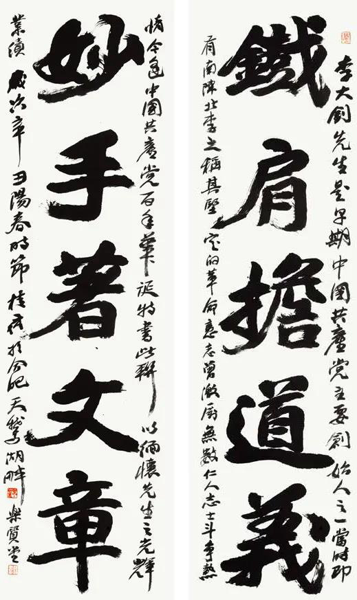 洪 炜-李大钊铁肩妙手联175cm×49cm×2