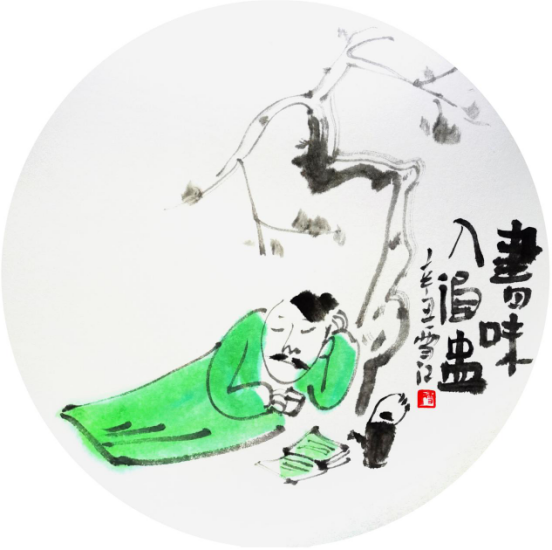 重意趣,重表达,沈雪江的水墨人物承袭着这些文人画传统,用笔自由,不拘墨法与笔法,意在写意传神。他的画面笼罩着一种淡然出世的情怀,这是一种难能可贵的气质韵致,也是文人画的至高境界。传统的魅力在于其严格的程式规范和完整的价值体系,沈雪江虽然重视传统,但并没有被传统所禁锢,他以复古为革新,有崇古好雅的风尚,寄情于笔墨的出世情怀,他摈弃了颂歌式的宏大主题创作,普遍选择了游离于现实生活的主题,在格调上具有浓厚的传统文人画的“雅”与“真”,其淡远天真、出尘脱俗如一泓清泉,能涤去万千烦恼。