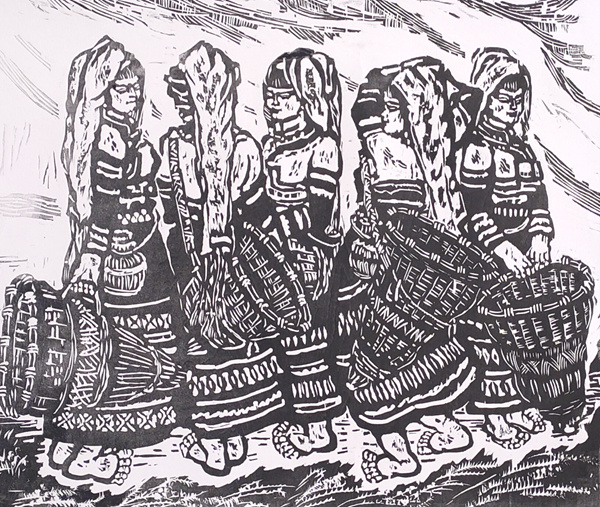 1989年为(拉祜族民间诗歌集)画(姆帕密帕)五幅插图