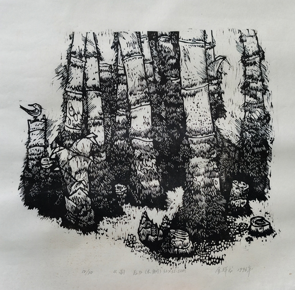 1984年版画<憩>入选云南省美术作品进京展,获得佳作奖