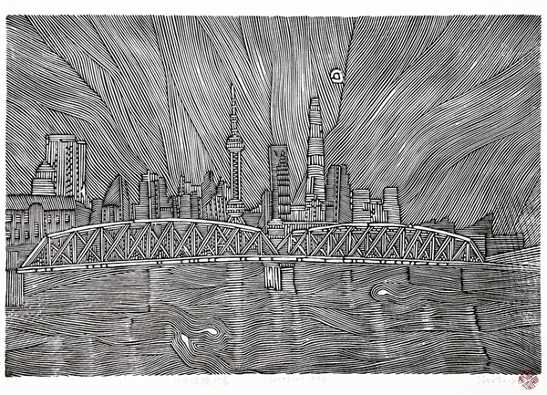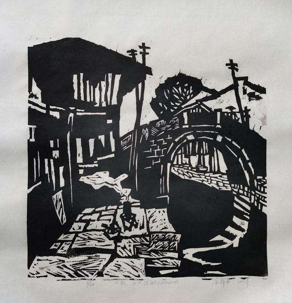 2021年(下河)(赶街)入选纪念中国新兴木刻运动90周年,鲁迅木刻讲习会旧址开馆“向鲁迅致敬——上海版画名家作品展”