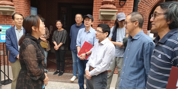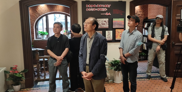 版画家桑茂林老师发言:自从事木刻起,鲁迅及鲁迅木刻讲习会就已深入人心,今天目睹了,万分激动。听着讲解员的讲解,当年的情景在脑海中浮现:触摸着木刻讲习所的墙壁,目睹者木刻讲习所的空间,聆听者经历过这里的主人的感人故事……时空穿梭于其间,内心感慨,交融复杂。遥想当年木刻救国,感知木刻星星之火燎原,体会木刻今天,实来之不易。今天的我们,何去何从,在这里会给于我们答案。