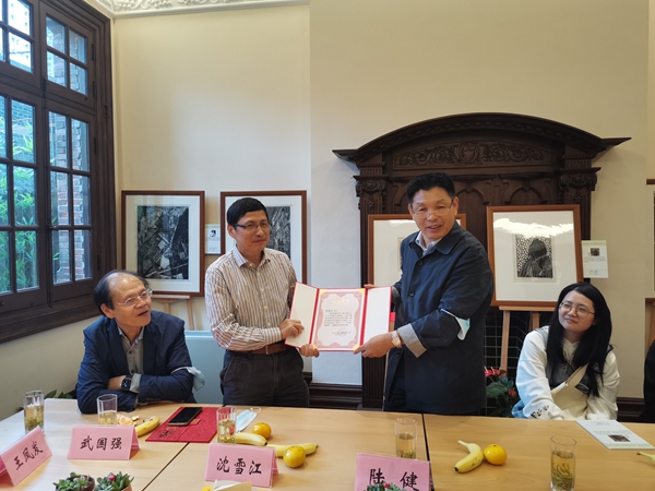 版画家徐龙宝老师发言:1981年,为纪念新兴木刻运动50周年我用一把刻刀雕刻木刻讲习会旧址图像。今天,在纪念鲁迅先生诞辰140周年之际,我为上海鲁迅纪念馆创作《新兴木刻运动90周年纪念藏书票》仍然以木刻讲习所为主题,並捐赠给修葺一新的木刻讲习会旧址陈列室,以表达一个木刻学子50年来对伟大木刻导师鲁迅的崇敬之情。愿作为新兴木刻诞生地的上海版画繁荣昌盛!