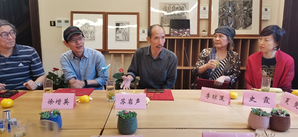 版画家苏岩生老师发言:温故而知新,在今天重塑上海文化的大背景下,我们理应奉献给观众一个不同的视角,让他们用一种更加感性的、生动的、同样是不寻常的、有审美距离的、以及用心灵而非纯粹视觉的眼光,去重新审视和阅读我们所身处的这个城市,这应该是一个艺术工作者的热情和责任。