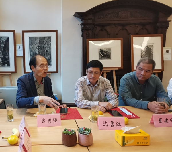 虹口区文联主席陆健发言:刚刚多位画家谈的感想和创作体会。虹口区是鲁迅居住和活动轨迹比较多的地方,鲁迅的名字又与新兴木刻版画紧密的联系在一起,新兴木刻运动不仅对中国美术发展产生深刻影响,也为中国革命胜利作出了贡献。今天继承发扬新兴木刻,是要以刀为笔去反映当下时代发展和人民生活的变化。我们虹口文联和美协一定会积极参与,提供服务。欢迎你们来经常来虹口,也欢迎更多的版画家来虹口创作,创作更多的精品力作,谢谢大家!