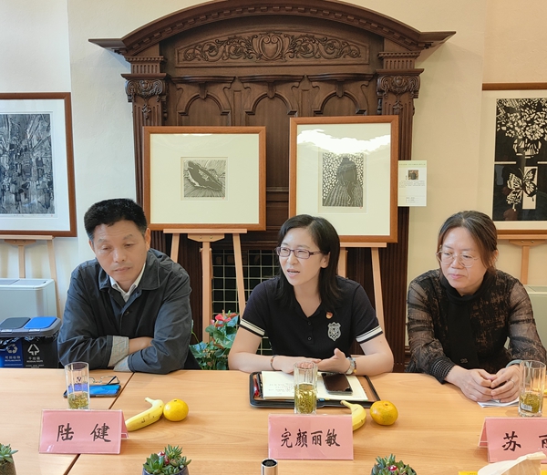四川北路街道党工委副书记完颜丽敏发言:我是刚刚调到四川北路街道党工委工作,感觉木刻讲习会旧址做得非常好,鲁迅先生在90年前邀请了日本友人内山完造的胞弟,版画家内山嘉吉先生,在这里为13位进步艺术青年,举办为期六天的木刻讲习班,传授木刻技法。今天的版画讲座研讨,再次邀请了13 位木刻艺术家座谈,进一步促进了中国的新兴木刻艺术的发展。当年,中国革命风起云涌,版画为发动群众,宣传革命,为推翻三座大山做出了巨大的贡献,今天为了宣传和建设我们的国家繁荣昌盛,版画在不同的时代,同样发挥着其它画种不可取代的作用,在民族复兴的伟大时代下,我们欢迎有更多的版画家来到有着“三地文化”之称的虹口区展示作品,让木刻艺术赓续传承,发扬光大。