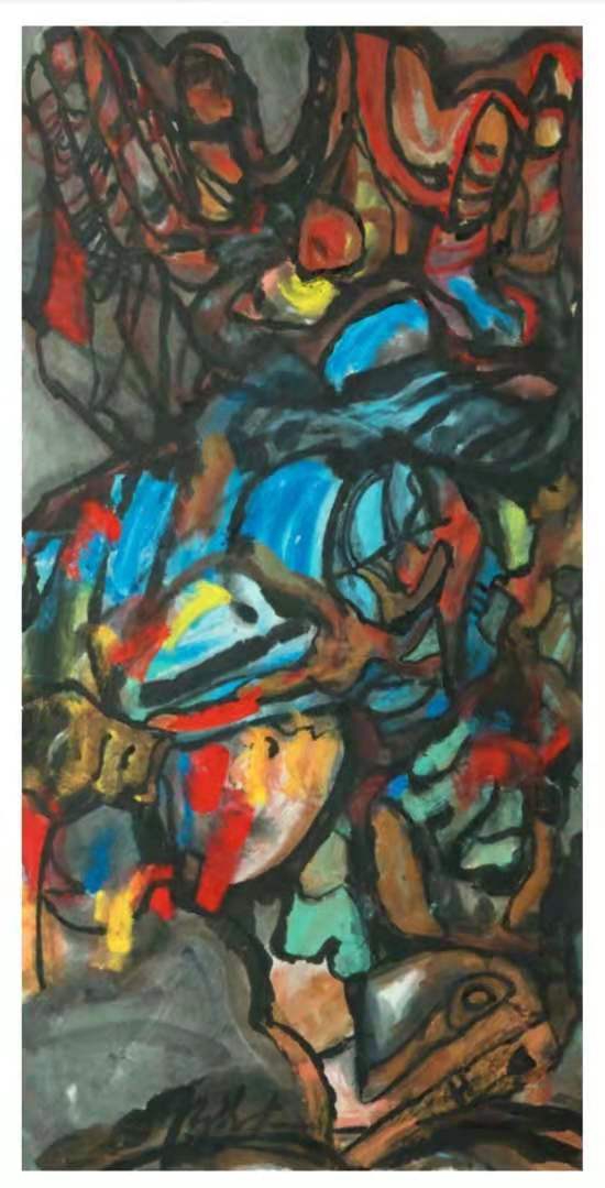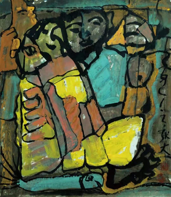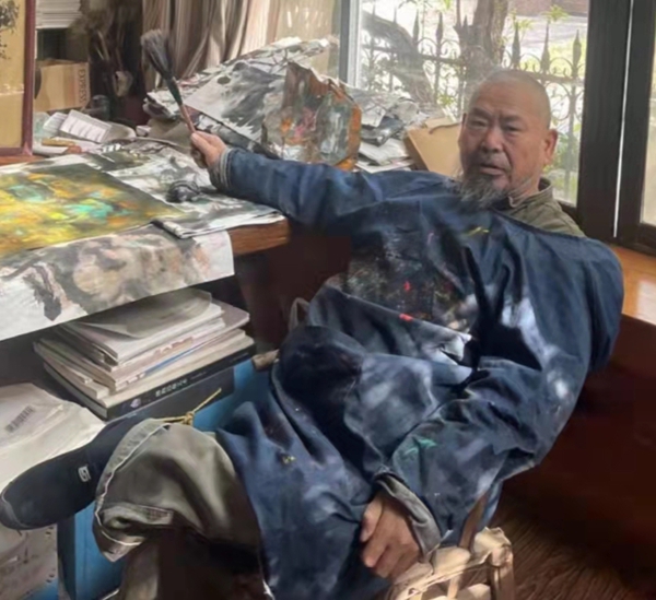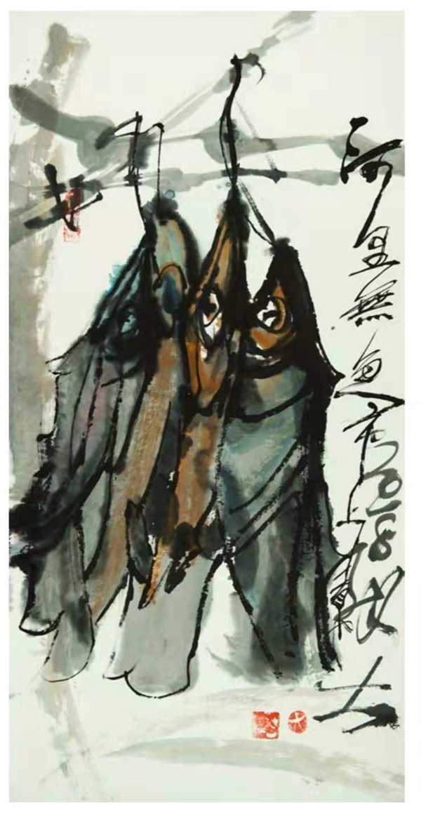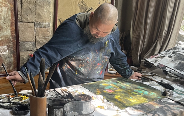 今年四月份我和隋军第三次到张大工作室,对他的作品进行一次大大小小的盘点,在他创作的四五百件作品中挑选了一百三十多件,有大六尺整纸大的作品,也有几十公分的小作品,我们对他的艺术创作由衷的钦佩,用他的残疾之躯创作出这么多作品,总体来看我们的感觉作品立意高,用色用墨畅快淋漓,造型大胆变型夸张,艺术语言鲜明。