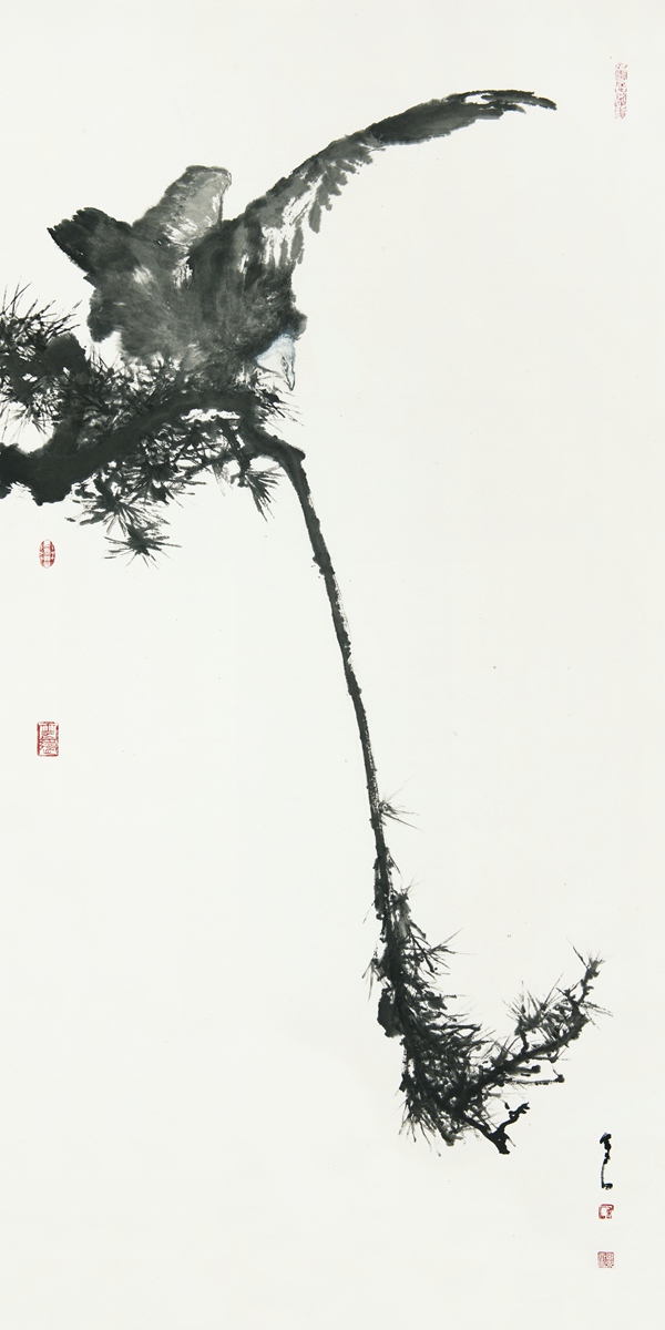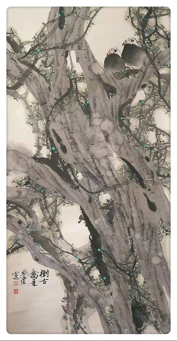 翁国梁 树古禽来 70×135cm